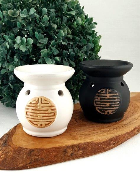 2x malá keramická aromalampa se symbolem ŠOU pro zdraví a dlouhověkost