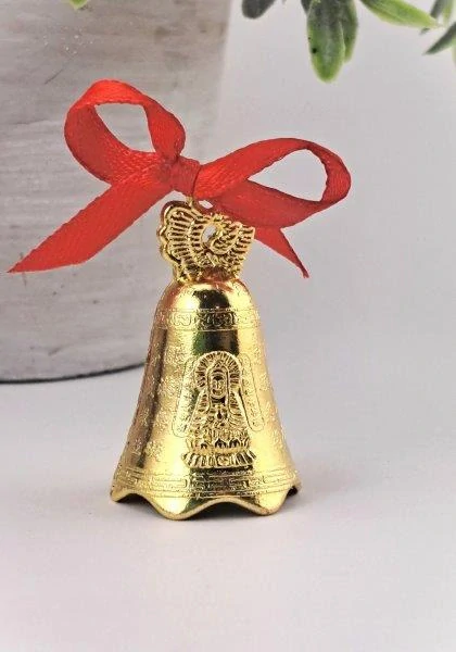 Malý kovový zvoneček ve zlaté barvě s vyobrazením bohyně Kuan Jin (Yin), uctívané ochránkyně rodinné harmonie a pohody a je zdoben ochrannými nápisy a symboly, zajišťujícími klid, zdraví a harmonii.