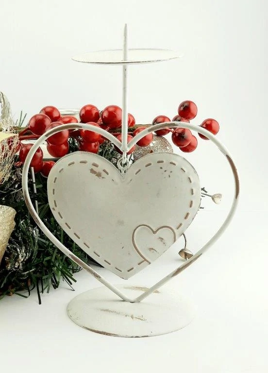 - KOVOVÝ BÍLÝ SVÍCEN VINTAGE SRDCE