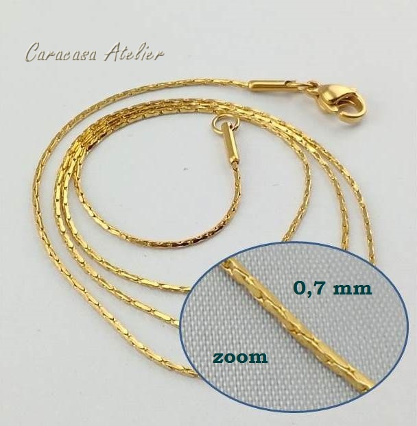 Drobný řetízek IDAHO - chirurgická ocel se zlatou galvanizací, síla 0,7 mm, délka řetízku 46 cm, zapínání na karabinku.