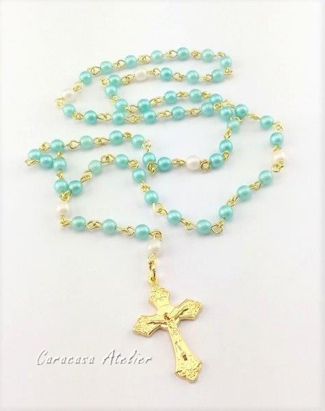 Klasický katolický RŮŽENEC s tyrkysovými perličkami.