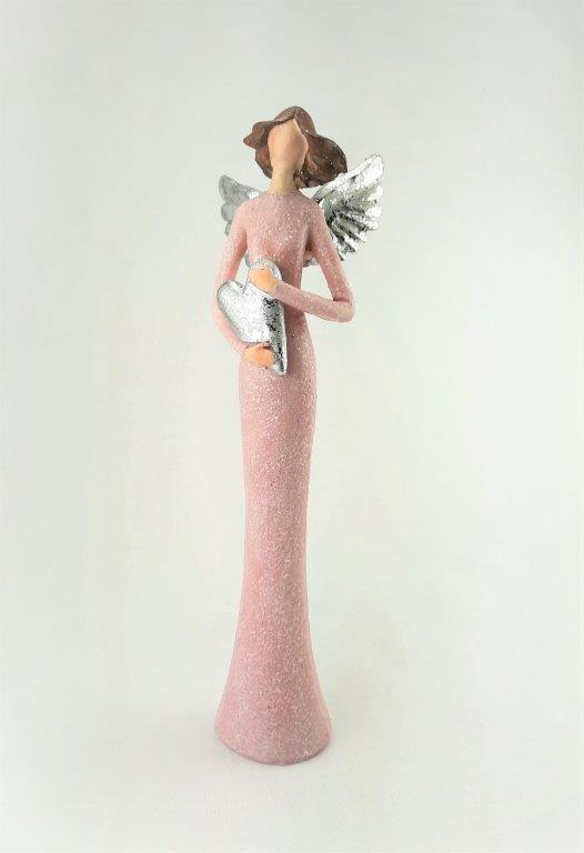 - RŮŽOVÝ ANDĚL STŘÍBRNÁ KŘÍDLA A SRDCE - SOŠKA 23 CM