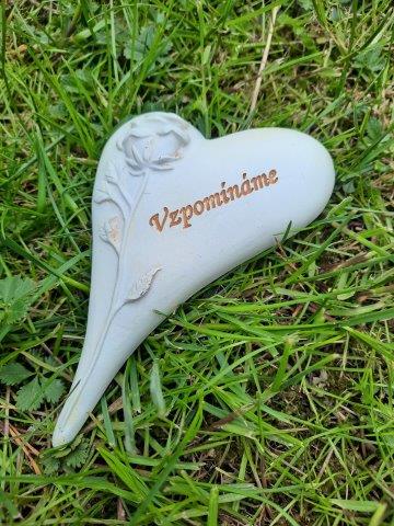 Srdíčko pro naše milované, kteří už s námi nejsou... z polystonu, materiálu vhodného pro venkovní použití, s reliéfem růže a nápisem Vzpomínáme