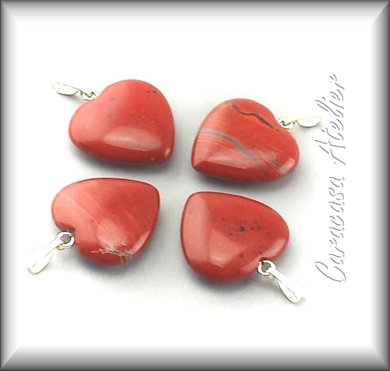 Přívěsek ve tvaru srdíčka z JASPISU ČERVENÉHO ve velikosti 2 cm, kovový úchyt z postříbřeného tombaku.