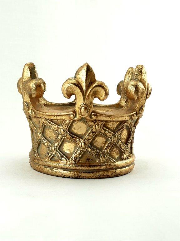 Svícen určený pro čajové svíčky ve tvaru zlaté koruny je velmi pěknou a elegantní dekorací, která ozdobí váš interier