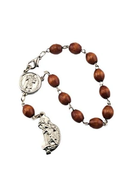 Přívěsek oboustranný medailonek sv. Kryštofa, dřevěné korálky.